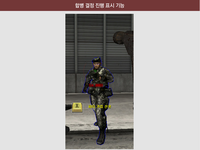 자신의 파티와 합병 결정 진행 중인 상대 파티 구성원에게 파란색 외곽선 처리되어 표시 됩니다.
