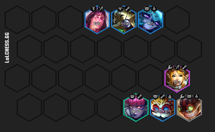 배치는 상대 배치에 따라 럭스 위치를 바꿔주셔야하는게 핵심입니다 럭스는 상대 메인 딜러 기준 대각선에 배치하셔야합니다. 암살자를 상대로는 박스 배치를 하셔야합니다.
