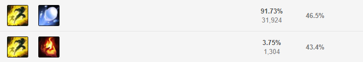 표식과 E스킬 연계가 매우 좋고 어그로 핑퐁에 능력을 더 해주기 때문에 점멸 + 표식 스펠을 추천드립니다.