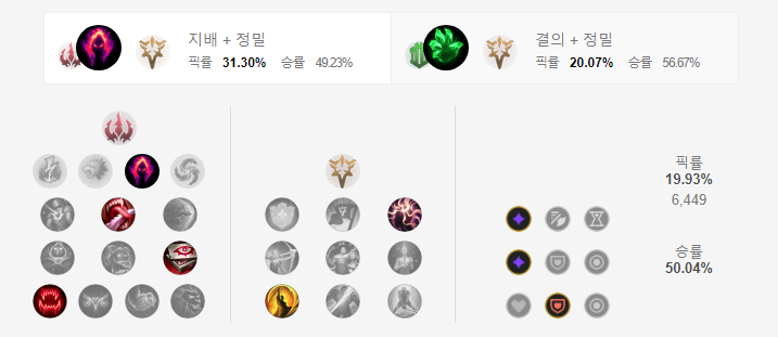칼바람 나서스의 룬은 지배 + 정밀입니다.