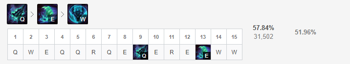 칼바람 모데카이저 스킬은 Q > E > W 순으로 마스터합니다.