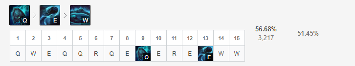칼바람 요릭 스킬트리는 Q > E > W 입니다.