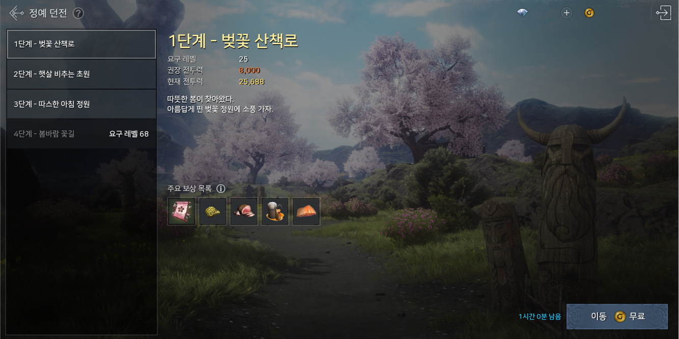 벚꽃 정원 이벤트 던전에서는 일반적인 필드나 던전보다 많은 골드를 획득할 수 있습니다.