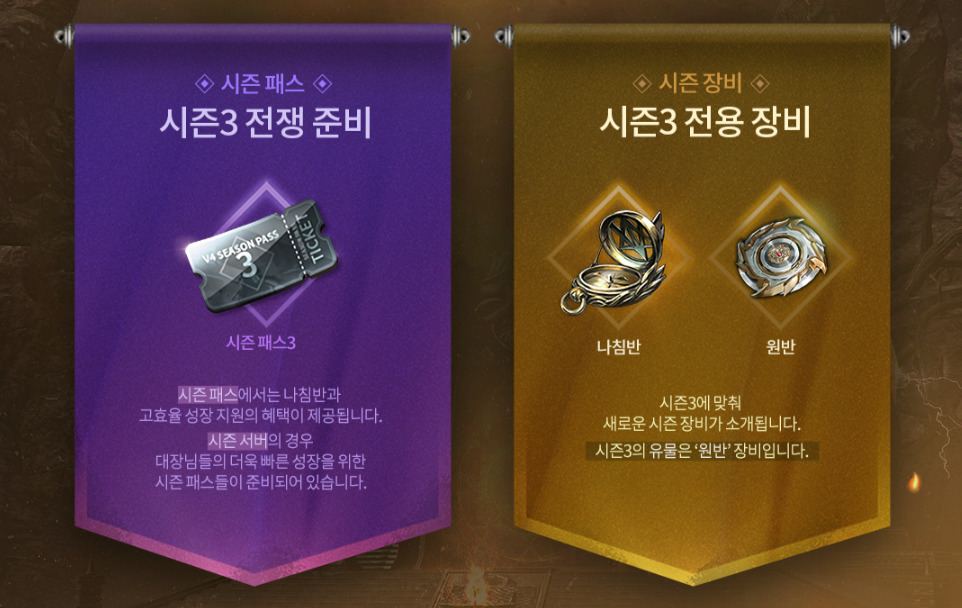 시즌3에 맞춰 새로운 시즌3 전용 장비 나침반, 원반이 등장한다고 합니다.
