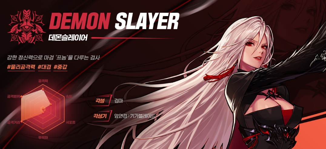 대검과 중갑을 사용하는 물리공격력 딜러입니다.