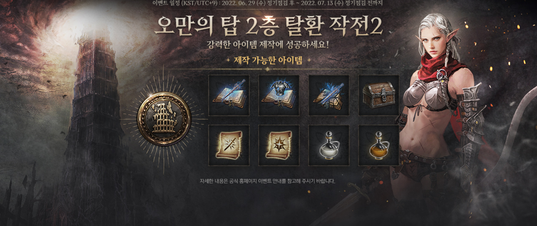 3) 이벤트 기간 동안 ‘오만의 탑 탈환 증표’를 활용하여 다양한 아이템을 제작할 수 있습니다.