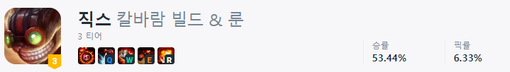 칼바람 직스는 현재 3티어에 자리잡고 있습니다.