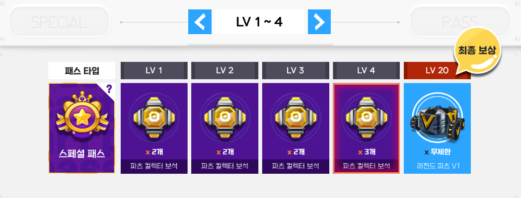 프리미엄 패스 30레벨 달성 후 스페셜 패스에 참여할 수 있습니다.