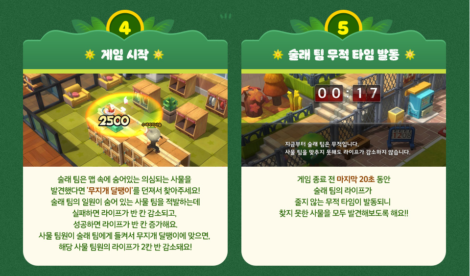 게임 종료 전 마지막 20초 동안 술래 팀의 라이프가 줄지 않는 무적 타임이 발동됩니다.