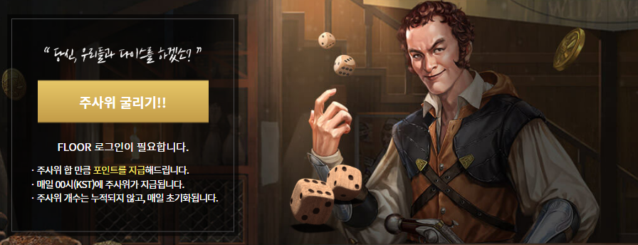 1일 2회 주사위를 굴릴 수 있습니다. 주사위를 굴려서 나온 만큼 포인트가 지급된다고합니다.