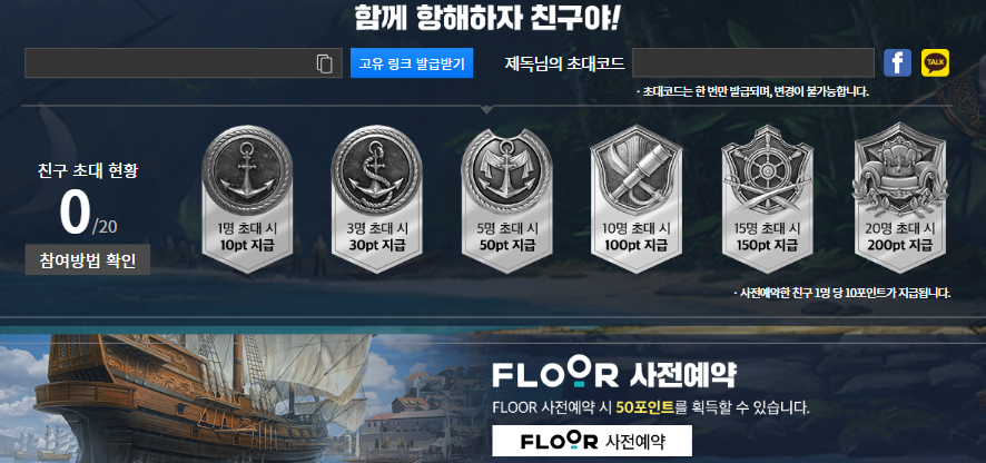 친구들에게 대항해시대 오리진을 소개하면 포인트를 획득합니다.