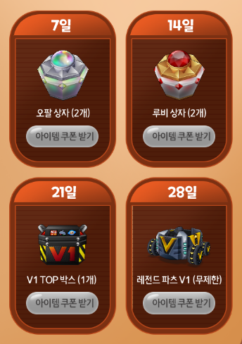 7일 출석 : 오팔 상자 2개