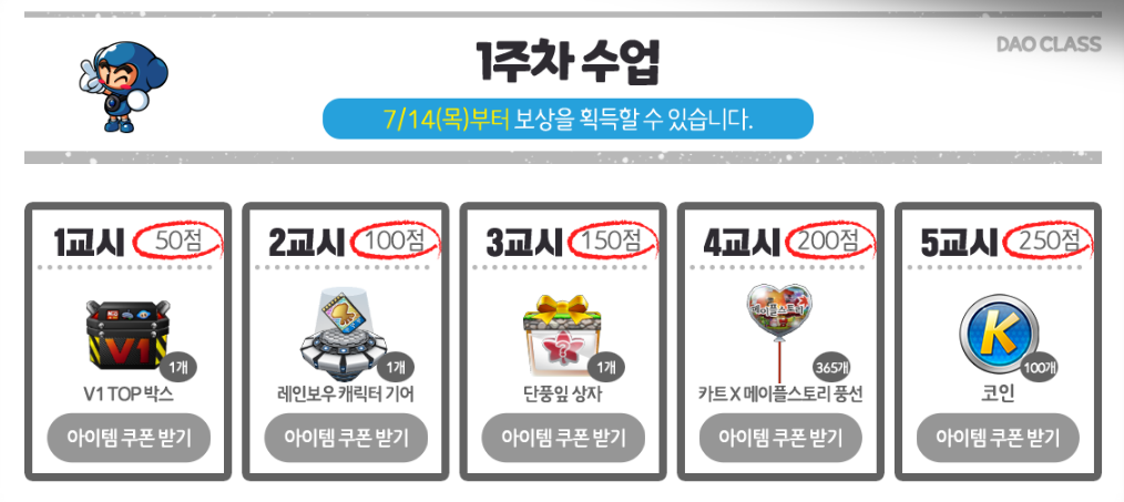 주차 별로 단 1번만 출석 체크를 해도 이벤트에 자동 응모되니 꼭 빠짐없이 출석체크 하시길 바랍니다. ㅎㅎ