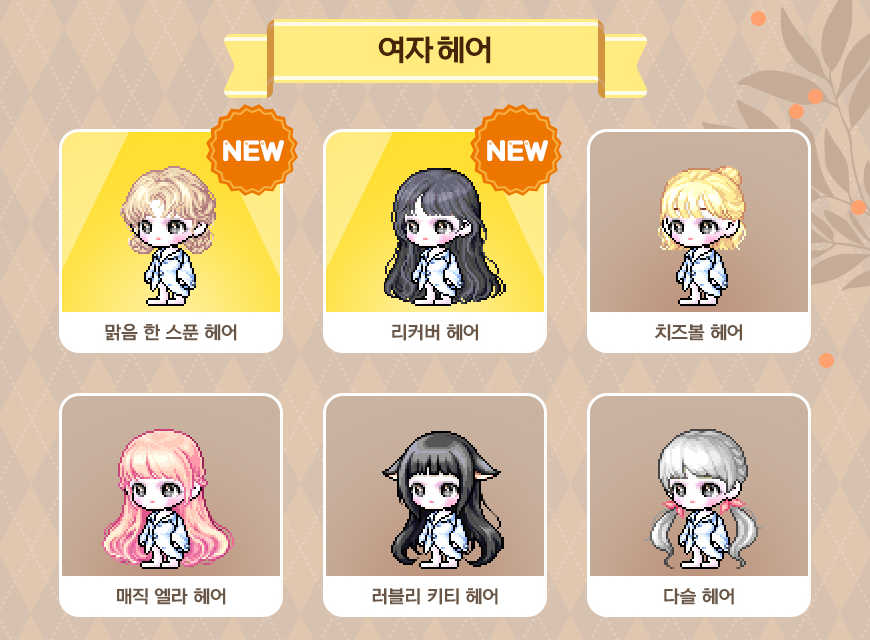 NEW 맑음 한 스푼 헤어 16.67% / NEW 리커버 헤어 16.67% / 치즈볼 헤어 16.67%