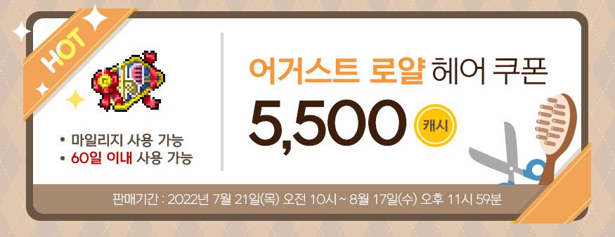 어그스트 로얄 헤어쿠폰 5500캐시