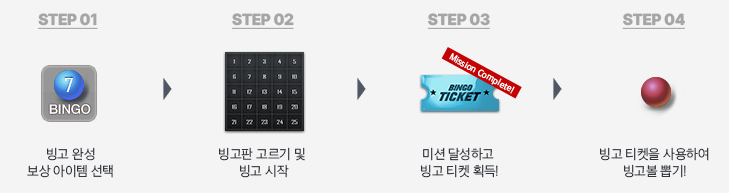 *빙고 전체 완성 보상 아이템은 최초 빙고 이벤트 시작 시 선택 하실 수 있으며 빙고를 완성하시면 선택하신 보상을 획득하실 수 있습니다.