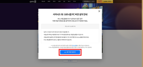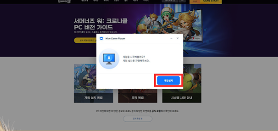 [게임 설치] 버튼을 눌러 서머너즈 워: 크로니클을 설치합니다.