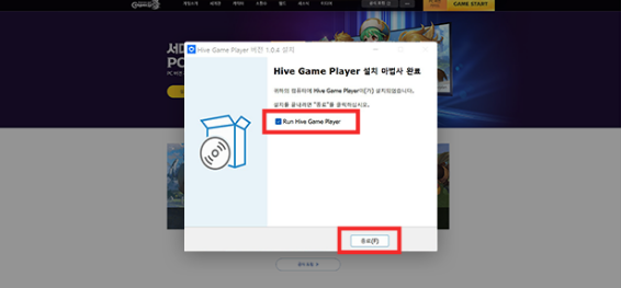 다운로드 받은 EXE 파일을 설치한 뒤, 체크박스를 해제하지 않고 종료 버튼을 누릅니다.