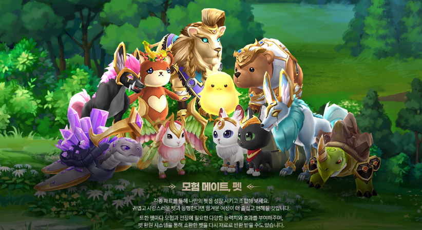 또한 펫마다 모험과 전장에 필요한 다양한 능력치와 효과를 부여해주며, 펫 환원 시스템을 통해 소환한 펫을 다시 재료로 반환 받을 수도 있습니다.