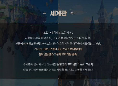 거대한 정쟁으로 황폐화된 프리스톤 대륙에서 살아남은 템스크론과 모라이온 종족.