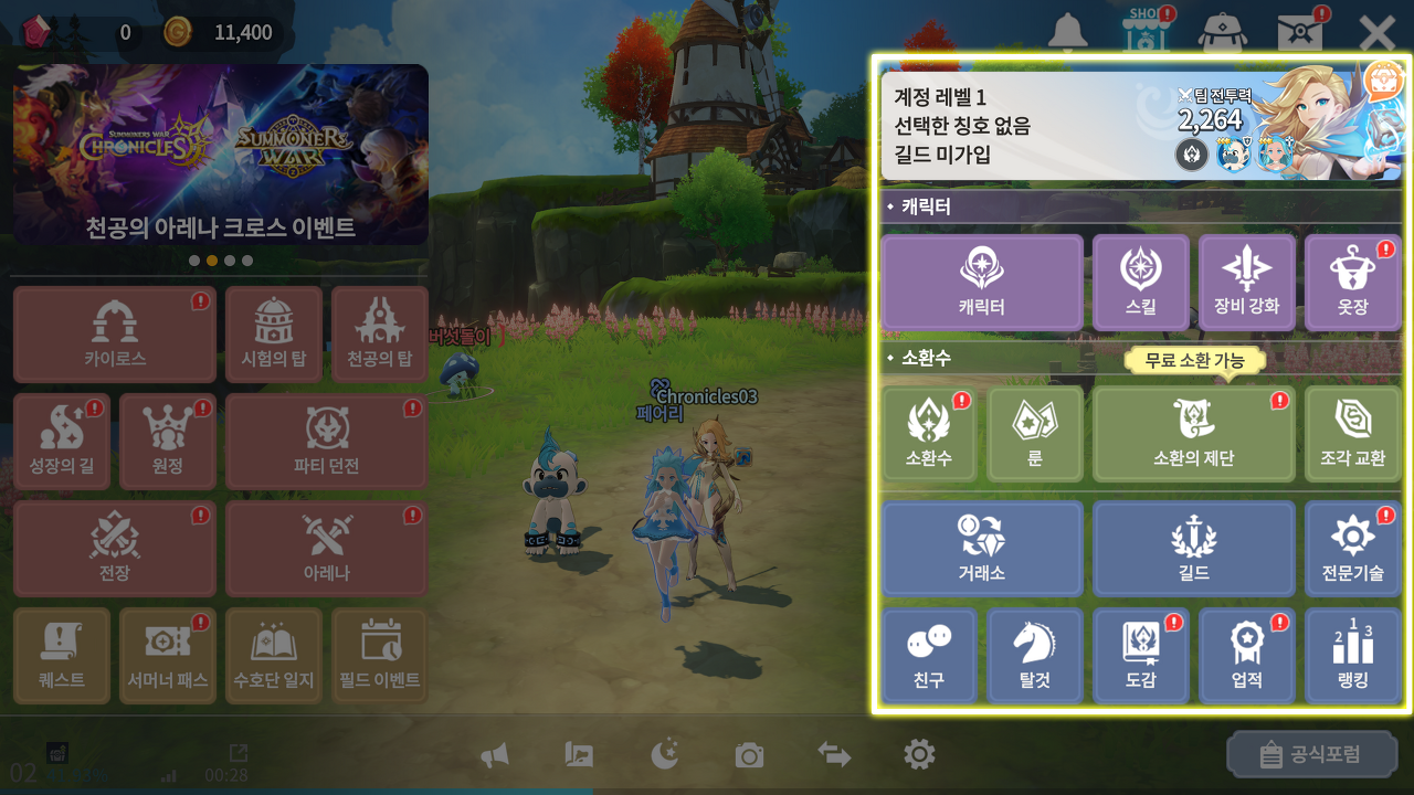 서머너즈워 크로니클 메뉴 및 UI 소개