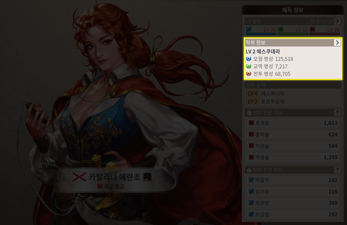 일반적으로 제독들은 연대기 스토리에 부합하는 특징을 가지고 있고, 주요 능력치나 스킬이 그에 맞게 분포되어 있는 편이지만 반드시 정해진 그대로 키워야만 하는 것은 아닙니다. 자신만의 조안 페레로, 자신만의 카탈리나 에란초를 육성해 보세요.