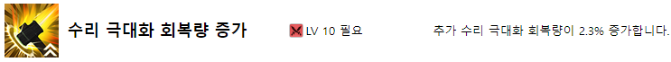 수리 극대화 회복량 증가는 추가 수리 극대화 회복량이 2.3% 증가합니다.