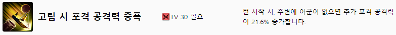 고립 시 포격 공격력 증폭은 턴 시작 시, 주변에 아군이 없으면 추가 포격 공격력이 21.6% 증가합니다.