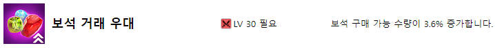 보석 거래 우대는 보석 구매 가능 수량이 3.6% 증가합니다.