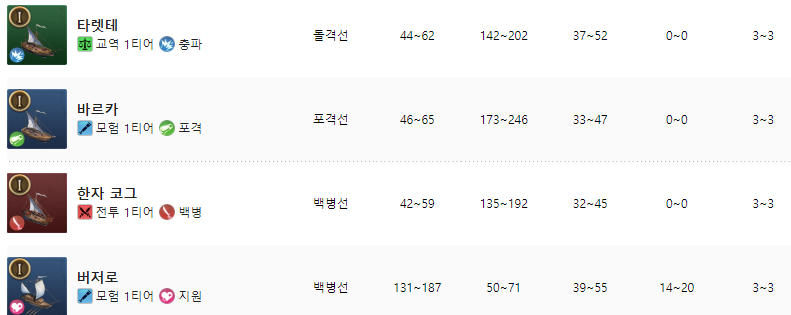 그리고 특정 선박의 설계레벨이 높아질수록 선박의 스텟중 최소 수치가 점점 오르기 때문에 갈수록 좋은 성능의 선박을 얻을 수 있습니다.