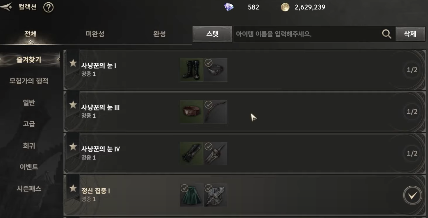 컬렉션에 보면 명중과 관련하여 이렇게 10종이 추가됐습니다.