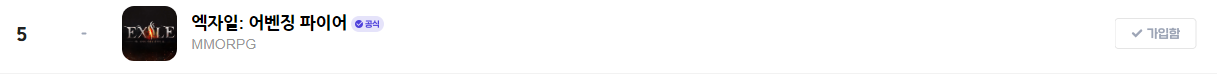 엑자일: 어벤징 파이어가 출시되고 네이버 게임 일간 순위 5위를 유지하고 있습니다.