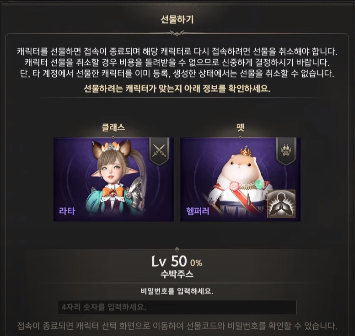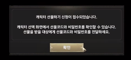 모든 캐릭터 슬롯에 캐릭터가 생성돼 있는 경우, 캐릭터 선물하기로 캐릭터를 받으실 수 없습니다.