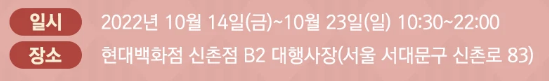 기간 : 2022년 10월 14일 ~ 23일 (10:30 ~ 22:00)