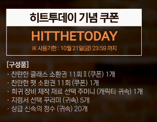 이번 포스팅에는 히트2 ‘10월의 HIT2DAY’ 온에어 쿠폰 코드 2종 안내 보상 정보에 대해 알아보려고 해요.