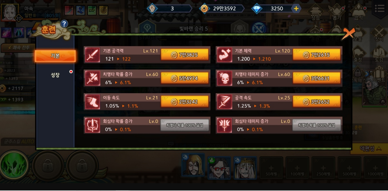 하지만 스테이지가 높아질수록 너무 낮은 체력, 공격 속도 등으로 인해 공격을 하기도 전에 한 대 차이로 실패할 수 있는데요.