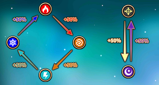 상성이 좋은 속성으로 공격하면 데미지가 증가합니다.