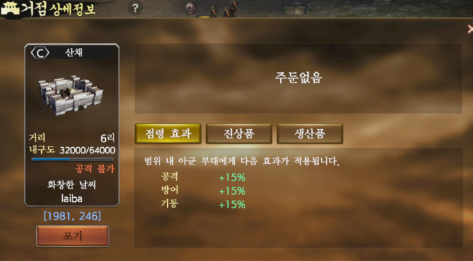 점령한 거점은 다른 유저의 공격을 받아 빼앗길 수 있습니다.