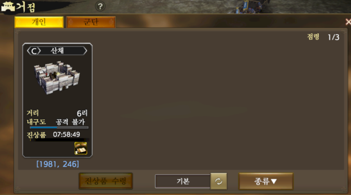 ※ 보유하고 있는 거점 종류 중복 시 최고 등급의 거점 1곳에서만 진상품과 생산품을 받을 수 있습니다.