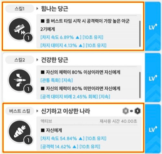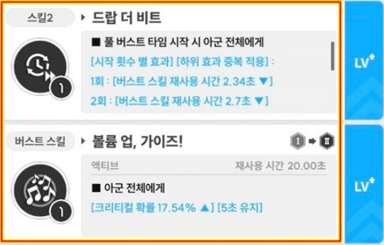 볼륨의 장점 역시 상술한 리타와 거의 흡사합니다. 버스트 스킬 쿨타임 감소, 강력한 크리티컬 버프 (크리티컬 데미지 증가 버프도 동반) 이 장점이죠. 다만 리타의 경우 회복 효과까지 지녀 완벽한 버퍼라면 볼륨의 1스킬은 본인 공격력 증가에 그쳐 다소 아쉬운 편입니다.