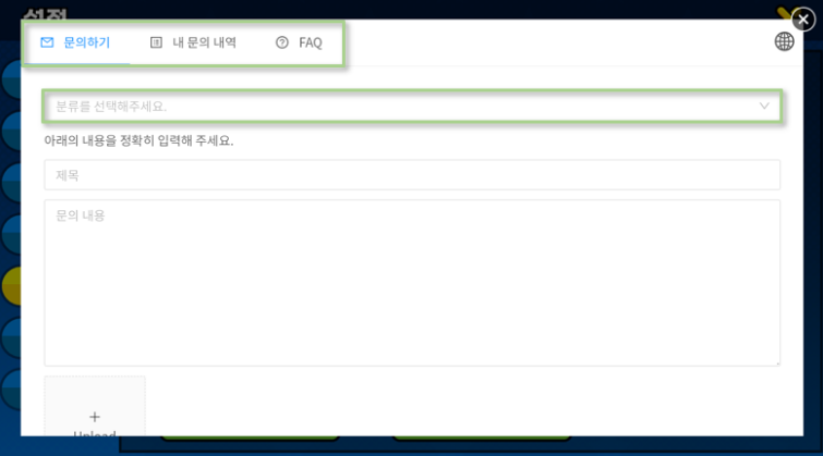 - 문의하기, 내 문의 내역, FAQ 를 확인할 수 있습니다.