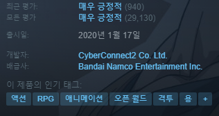 드래곤볼 Z 카카로트의 스팀 모든 평가는 매우 긍정적입니다.