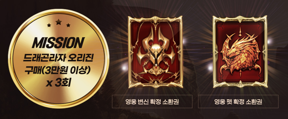 해당 미션들을 통과하신 분들에게는 드래곤라자 오리진 쿠폰 전설 변신 소환권이 지급됩니다.