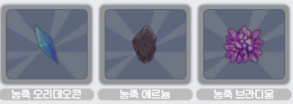 재련 재료는 장비 부위에 따라 오리데오콘/에르늄/브라디움 계열로 나뉩니다.