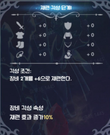 각 장비 부위가 지정된 재련 수치에 도달하면 재련 각성 시스템을 통해 재련 효과와 능력이 더욱 증가하게 됩니다.