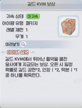 매 주 집계가 종료되면 길드 KVM 보물상자가 지급됩니다.