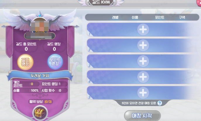 먼저, 길드 KVM은 유저를 기반으로 동일한 길드에 속해있는 모험가 5명을 구성으로 팀을 이루고
