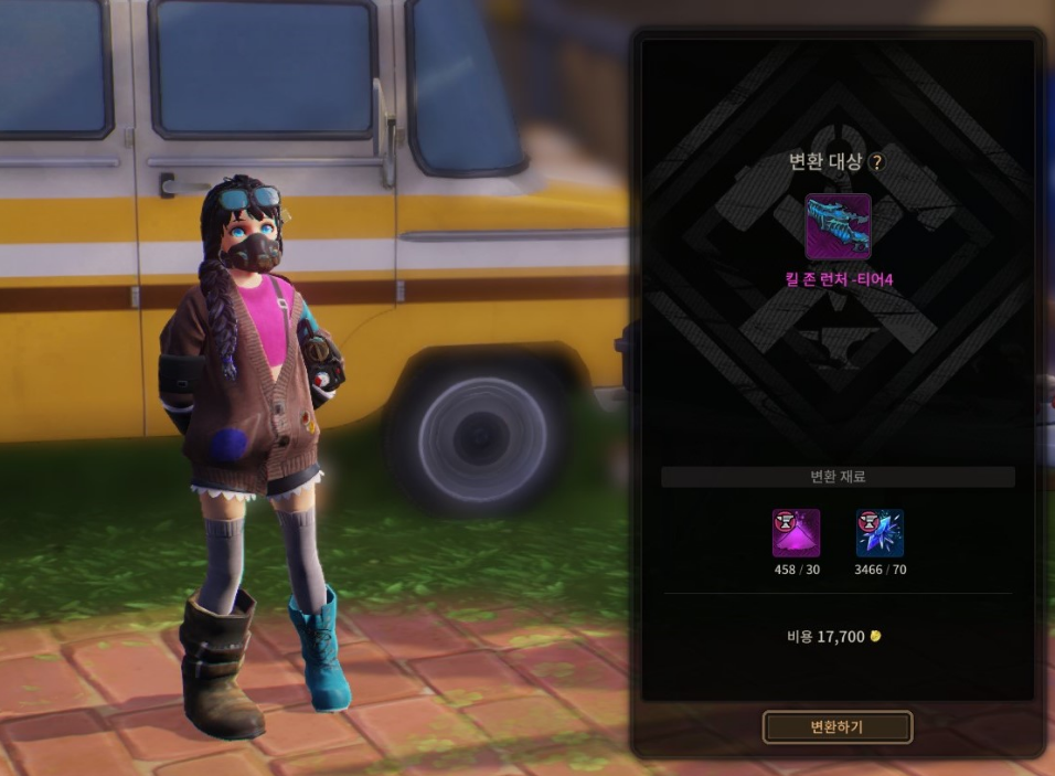 베이스캠프의 [유미] NPC에게 장비 변환을 이용하여