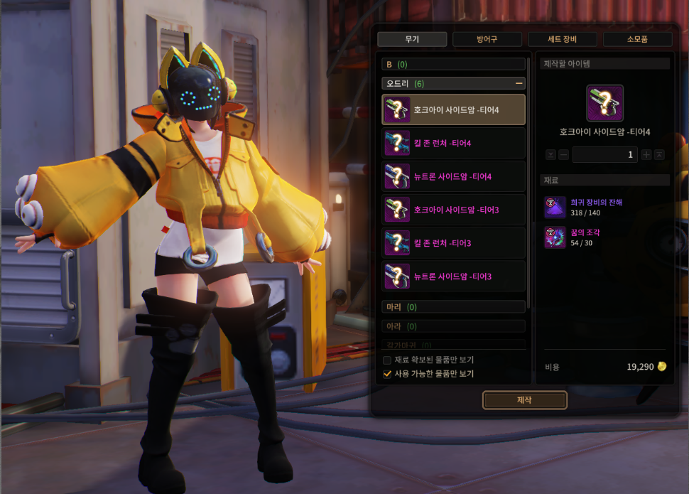 재료 아이템을 소모하여 희귀 등급 이상의 아이템을 제작할 수 있습니다.