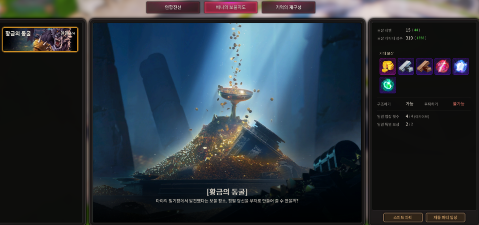 * 일일 입장 제한/특별보상 이용 횟수는 [베니의 보물지도] 내 모든 던전에 공유됩니다.